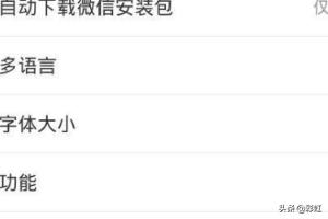 3、在通,t$^p4hQkpce1B^B用选项页面上, 我们可以看到开#6NtviaKO3hucj#$U&QTDXl9s启横屏模式、朋友圈小视频、自动下载xMU%Bziv8Xiuwg.0r1F微信安装包、多语言、字体大小、功能、流量统$UqTk/m#NW计等等选项,接着我们选择并点击字体大小选项。