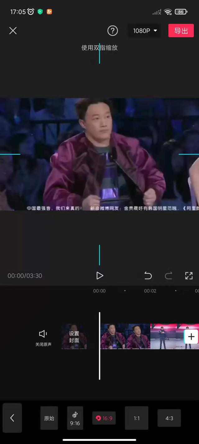 打开软件先点击开始创作,然后我们就选择一张短片或者是多段短片,选择好了之后,我们就把它点击确认,短片就会进入到页面里面,有时候短片拍的是横屏,还有的是竖屏,那我们就可以选择,使用比例,拍摄中视频要用16:9。