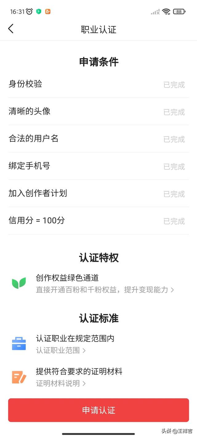 兴趣认证,你刚注册的账号是还不可以选择信息认证的,。它里边会有要求,你平均30天内作品的浏览量是达到5000以上的阅读或播放,还要满1000个粉丝 ,连续30天内必须发5个作品。