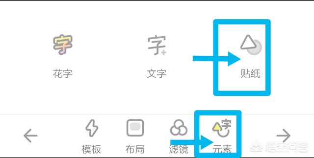 5、【加上印章】:如果想给图片加上印章,点击“元素”,选择“贴纸”,再点小购物车,找到传统风,再找到“水墨丹青”。回到贴纸界面,就可以找到印章了。