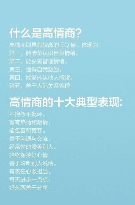 总的来说,情商高的人三观都是非常正的,而且有一颗宽容的心,不会纠结于一些小事自寻烦恼,有大格局,有人格魅力,这样的人都是比较优秀的,我们应该向这样的人靠拢,让自己变得越来越优秀。