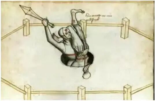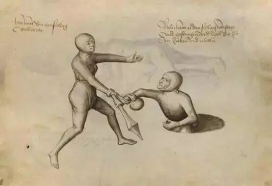 本书作者名叫汉斯·塔尔霍夫,师从德国剑圣约翰内斯·理查德纳尔,不过比起神龙见首不见尾的师尊,塔尔霍夫名气要大得多,他还十分善于思考总结,集合各家之长编纂出了这本武学秘籍,除了常见冷兵器的操作指南外,为了提高对普通人的实用性,还专门介绍了夫妻对殴的技巧心法,指导夫妻俩如何相爱相杀。