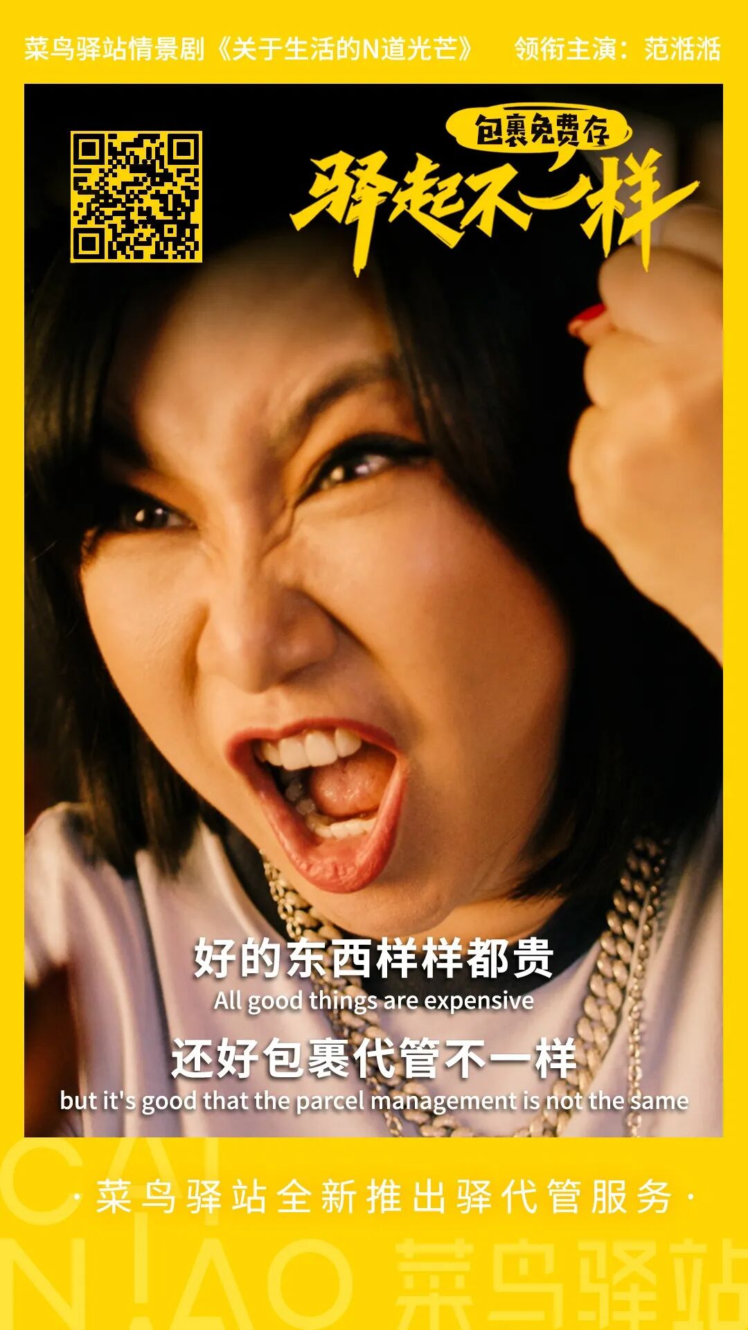 这是菜鸟驿站携手范湉湉,为品牌升级拍摄的一支全新视频。