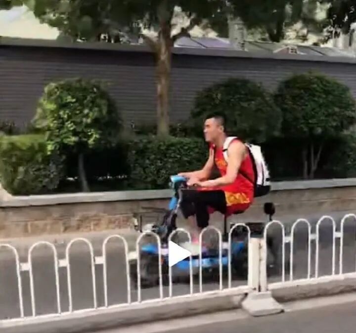 把一辆正常的小电驴骑得像个幼儿园小三轮,还一直傻乐,也是没谁了。
