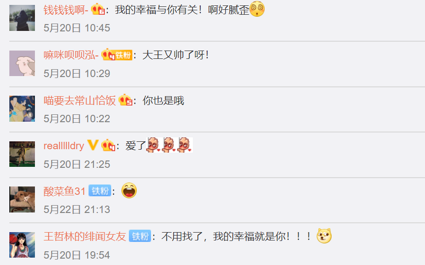 不仅对别人的粉丝慷慨,小王还很宠粉,动不动就土味情话。
