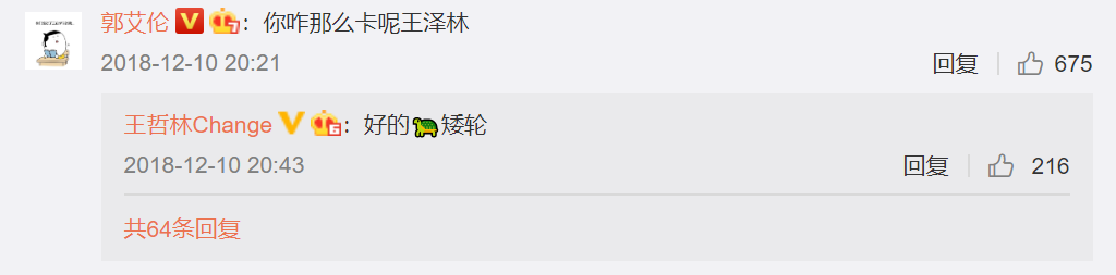 住在微博上的郭艾伦立马跑来贫嘴,说他傻傻呆呆。