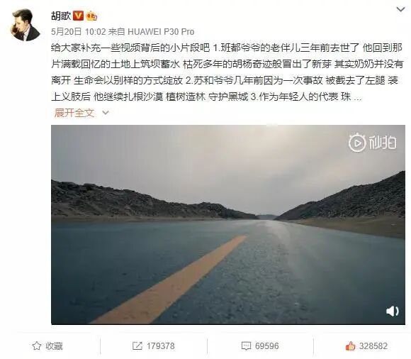 视频的最后,胡歌种下了一棵树,呼吁人们关注环保。