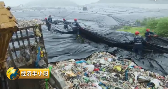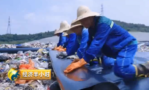 夏天往往是他们最难受的时候。太阳一晒,空气中到处弥漫恶臭。为了防止臭味外泄,他们还得往垃圾上铺一层黑色防泄膜。