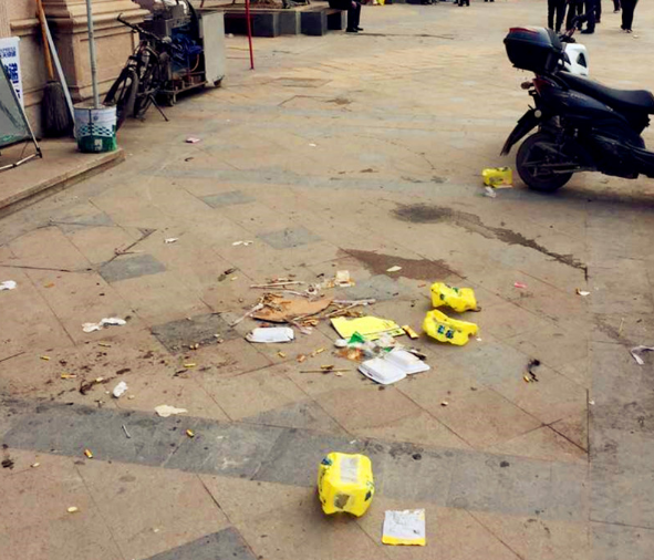 然而,谁都没在意卫生问题,大家都顺手将垃圾扔在地上。