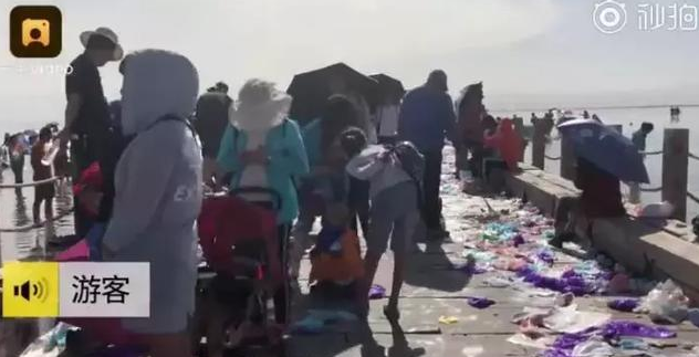 游客,一人扔一点,便有了这番触目惊心的景象。