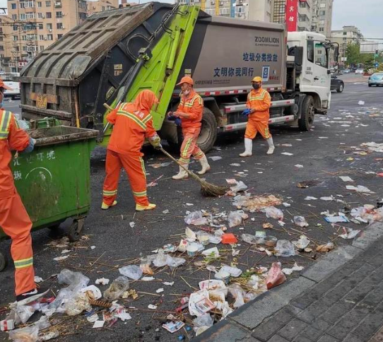 所有的环卫工人每天凌晨起床,打扫街道,把垃圾都清理到垃圾桶中。365天,风雨无阻。此后垃圾清运车司机定点收垃圾。