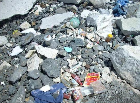 珠穆朗玛峰,遍地都是睡袋、氧气瓶、各种餐厨垃圾和排泄物。