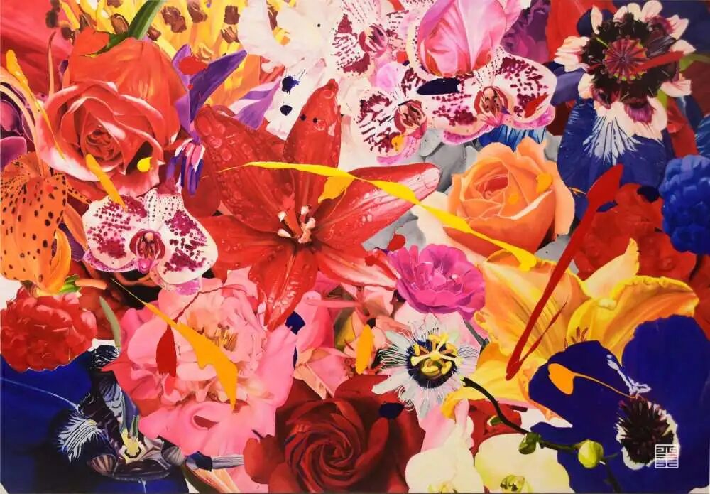 这幅国画作品看上去精美细致,但最牛逼的要数它的画幅2.3米*1.7米,如果能现场观看到,一定非常震撼了!