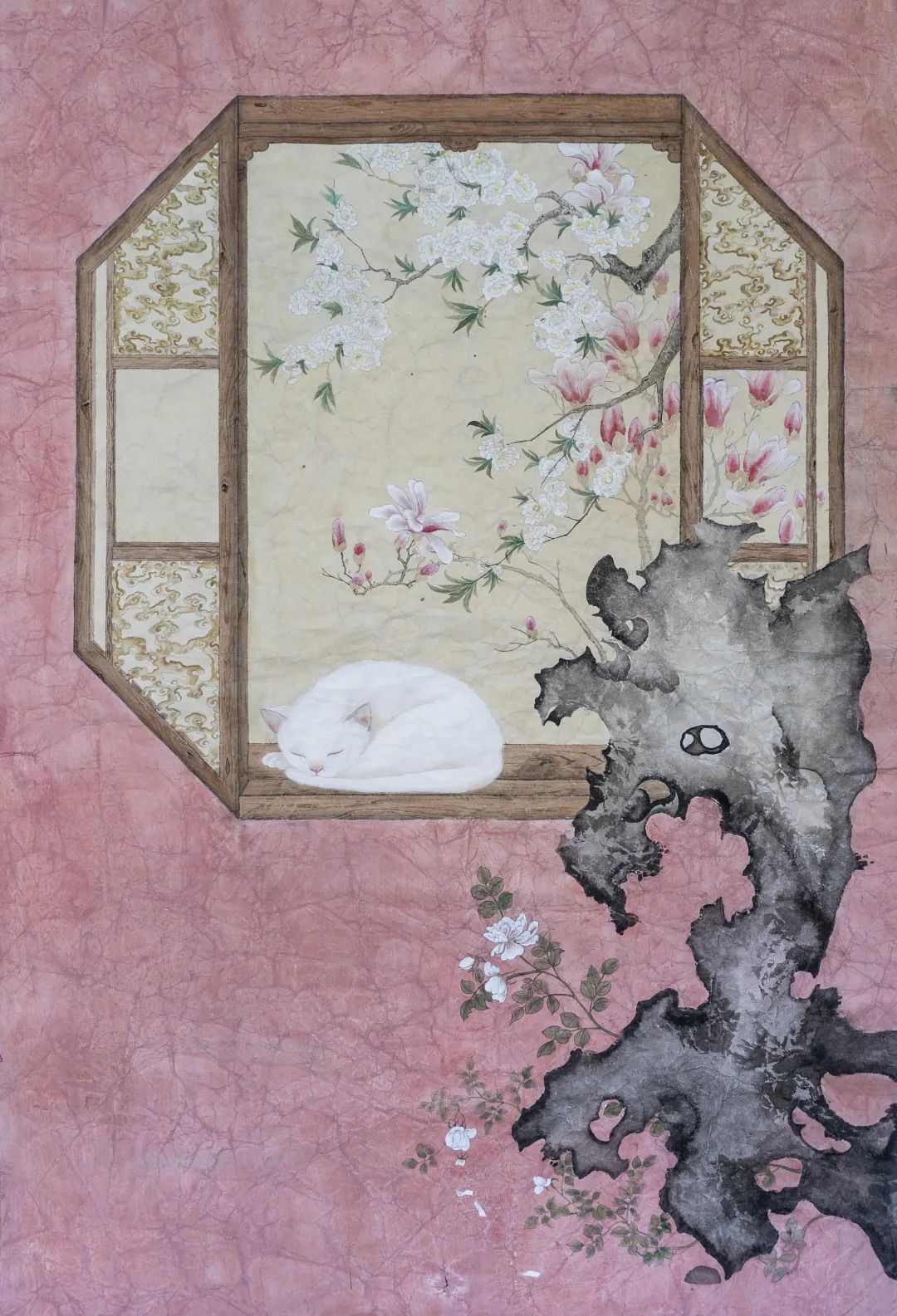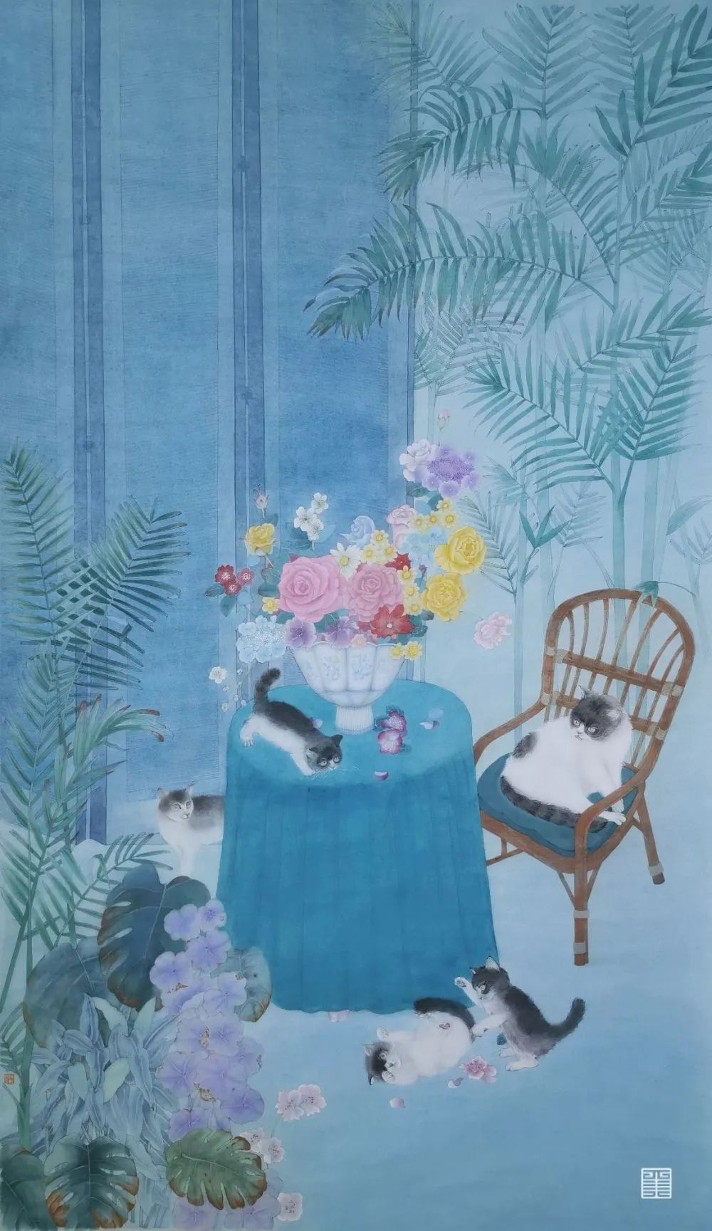 花木葱茏、微风绕、猫儿闹,夏日小院内,喧闹又宁静。