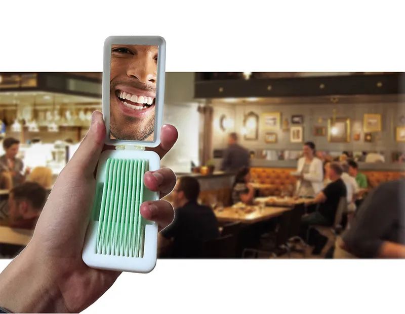 翻盖式结构,将牙线收纳和梳妆镜功能结合,解决了外出使用牙线时需要寻找镜子的尴尬。
