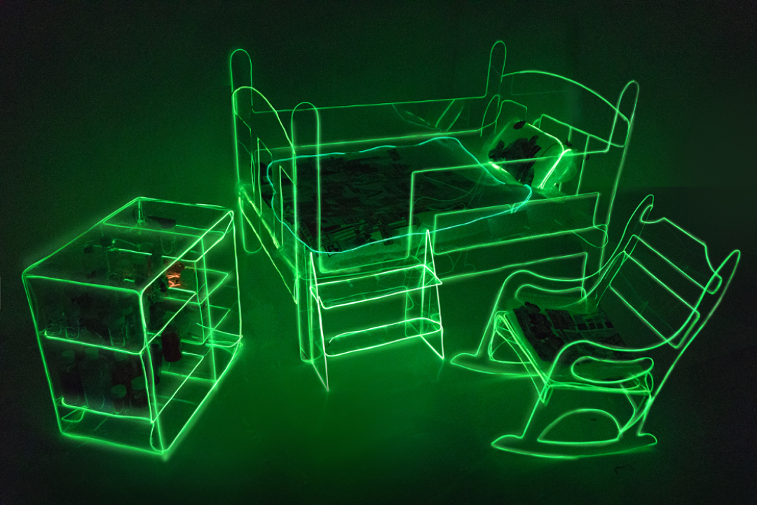 杨龙斌同学将自身的焦虑与不安的情绪,转换成空间与身体的结合,通过视觉语言表达出来,试图寻找这些情绪产生的根源。