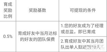 邀请奖励:所有级别的团队长,都可以享有一级团员出单保费的 2% 作为邀请奖励。管理津贴:不同级别的团队长,可以享有团员月保费的 1-5% 作为团队管理津贴。育成奖励:您邀请的好友成为经理或总监,若好友获得当月团队管理津贴,您即可获得该好友团员月保费的 0.5% 作为团队育成奖励,次月月底发放。做保险的我们都知道,想要在保险业长久走下去,除了单打独斗以外,发展团员、提升团队能量也是非常重要的!过去,i 云保一直在努力帮助大家更容易的出单;现在,i 云保除了会继续努力做好这一点以外,还会帮助大家发展团队、帮助大家把团队做得更大更强!