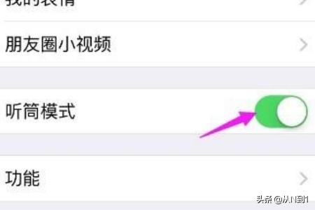 4、“听筒模式”下绿色部分消失则代表设置成功,打开微信语音听就是扬声器模式了。