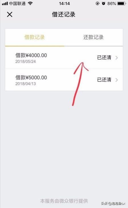 5、然后可以看到曾经借钱的记录,上面显示已还清就说明不用还款,点开任意一栏。