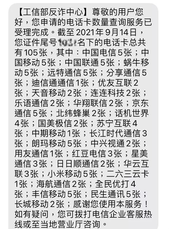 虽然这个查询结果不会告诉你,具体你都申请了哪些电话号码。但它会告诉你,在哪家运营商有几个号码,这样你一一对照排除吧。