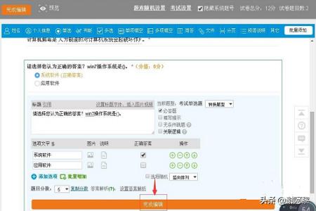 6、开始创建试题,在标题下面输入题目,在上面选择题型单项填空。