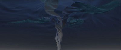 但有一个问题,解算会占用同学们的机器,而且整个解算的过程其实非常长,一旦机器被占用,学生就无法去进行相应的流程工作了,并且由于疫情也有比较大的影响,主要是巨大的缓存数据的交换问题。为了能够更好地让同学们将精力花费在艺术创作上,铁风扇工作室承担了繁重而且重复劳动的解算工作,才让作品得以顺利完成,疫情之下他们也很不容易,一度处于停工状态,但他们一直坚持想办法帮我们解决技术问题,我们特此在片尾署名以示感谢。还有一个困难是其中有几个特别复杂的流体结算,一般的机器根本算不动,工作室也在技术操作跟执行上提供了非常关键的支持。