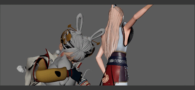 而同学们在“拜神”之余也对效果提出各种想法,艺术与技术做了很好的碰撞。学生们利用自己学习的知识进行了大量的特效测试跟制作工作,其中最大难题主要是解算,类似毛发、布料等都需要提前做好动力学解算,这个流程其实在同学们大三的时候就已经通过那个漫画的fanart短片进行了相关流程的训练,所以其实这块已经有了一定的技术储备跟经验了
