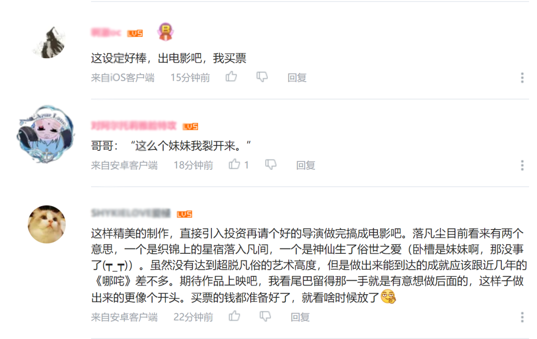 感谢钟鼎老师和《落凡尘》团队同学们为我们带来如此绝妙的作品。相信这些创作力内外充分涌流的后浪,将调动起更高质量的动画水准,在创作道路上摸爬滚打的同时,也为行业创造宝藏。