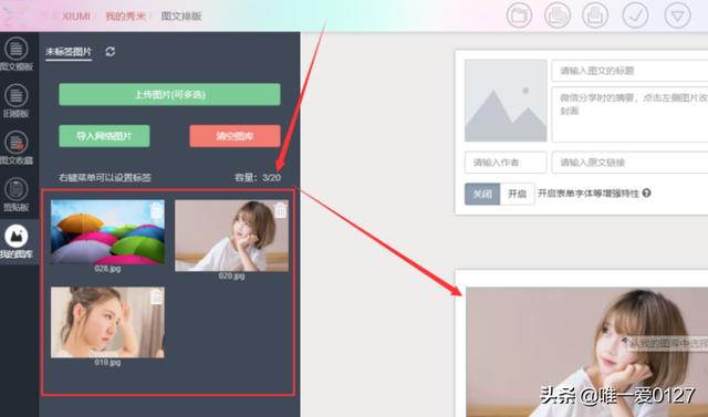 3,点击“上传图片”按钮,我们能选择上传本地图片。