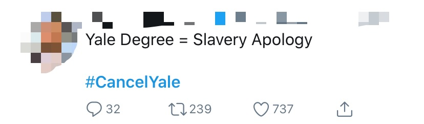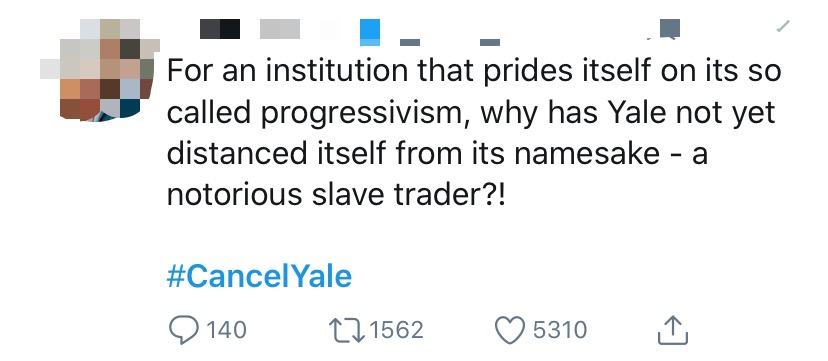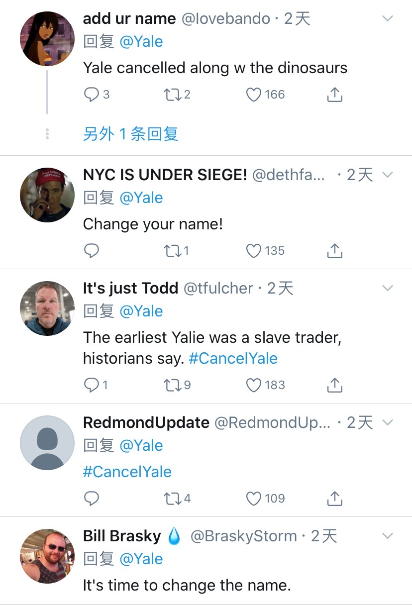 这都是因为一条推特指出耶鲁以奴隶主伊利胡·耶鲁命名。