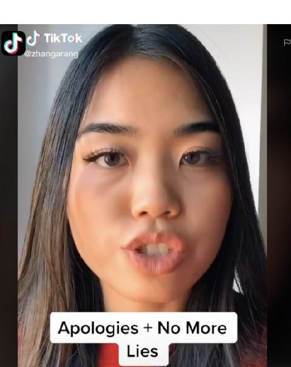 作为回应,近期Zhang在TikTok上发布“道歉+不再说谎”的视频。