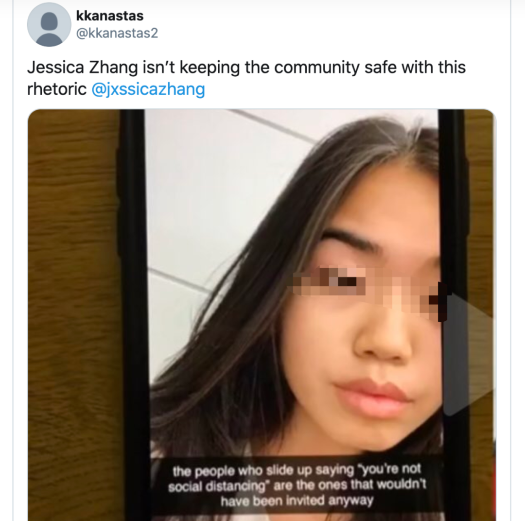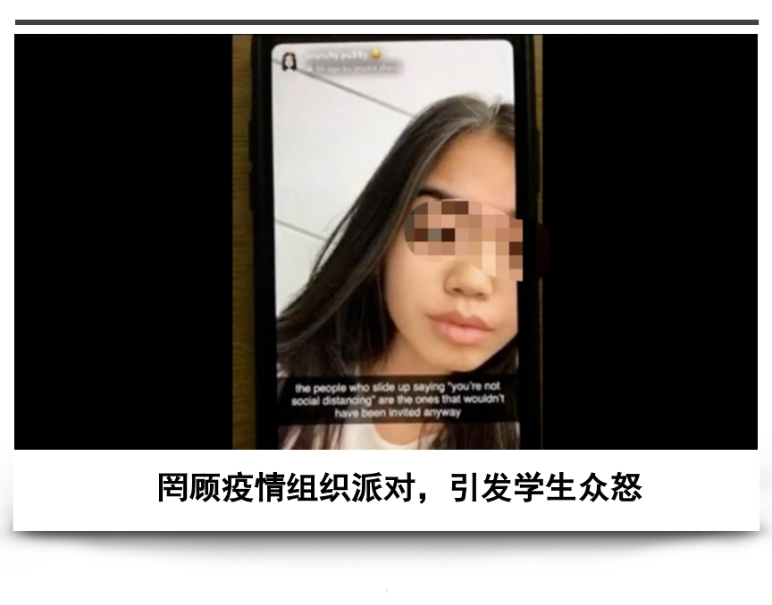 无论如何,Jessica Zhang罔顾学校规定开派对,违反社交安全距离和戴口罩的防疫要求的确在校园内造成了一定程度的恐慌。