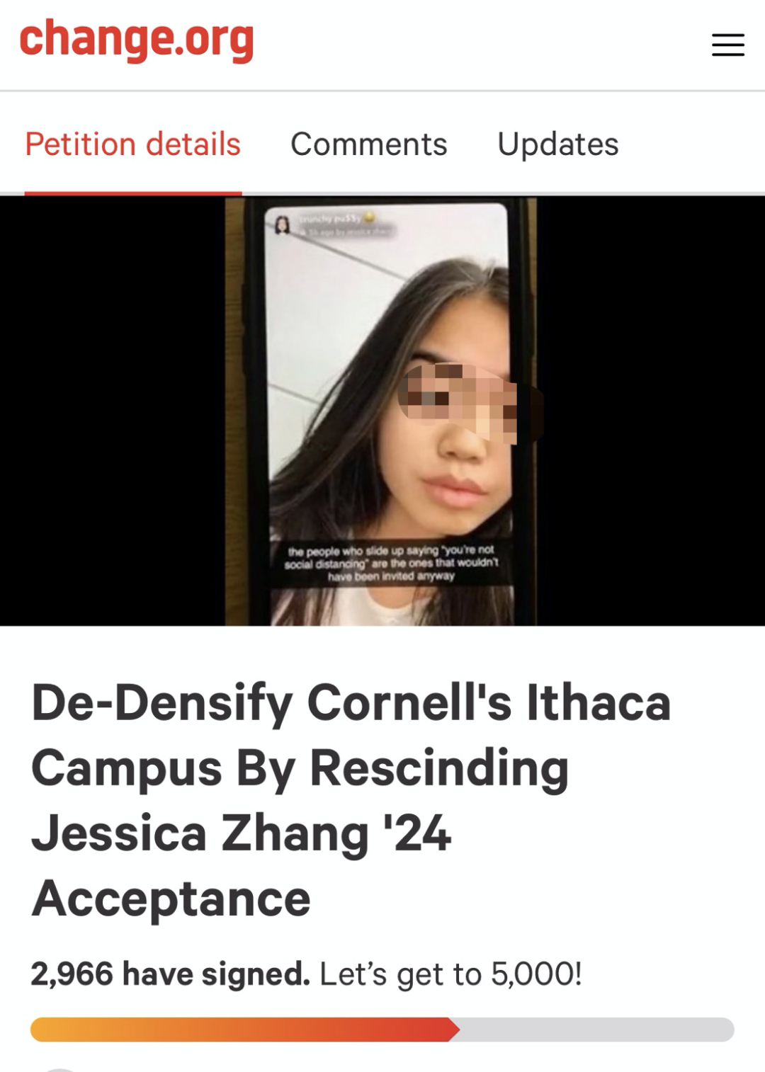 目前请求开除Zhang的请愿仍在继续,依旧不停有许多人请求康奈尔大学对她进行开除的处分,