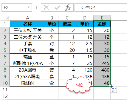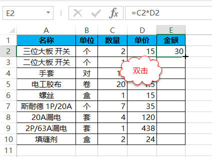 如果涉及到的单元格比较多,下拉很浪费时间。曾经有一个网友因为有1万多行内容,用下拉足足用了几分钟才完成,还拉得手酸。其实还有一种比较高效率的做法,就是输入第一个公式,将鼠标放在单元格右下角,出现“+”字箭头的时候,双击填充公式。