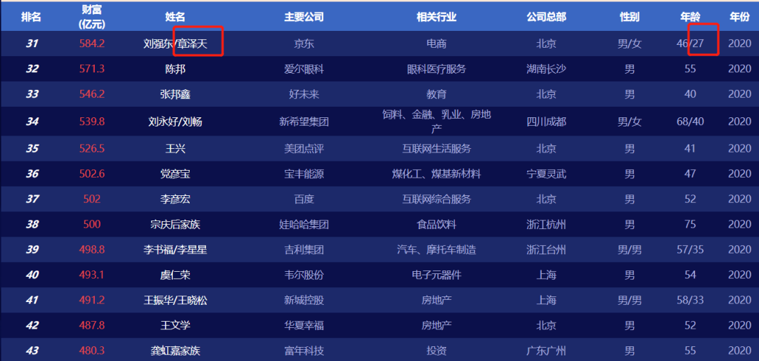 而年仅27岁的章泽天更是凭借584亿身家,跻身福布斯富豪榜,成为榜单上最年轻的存在。