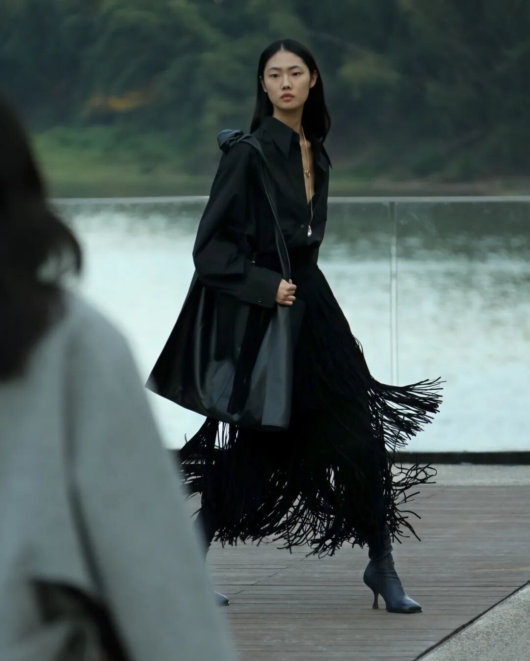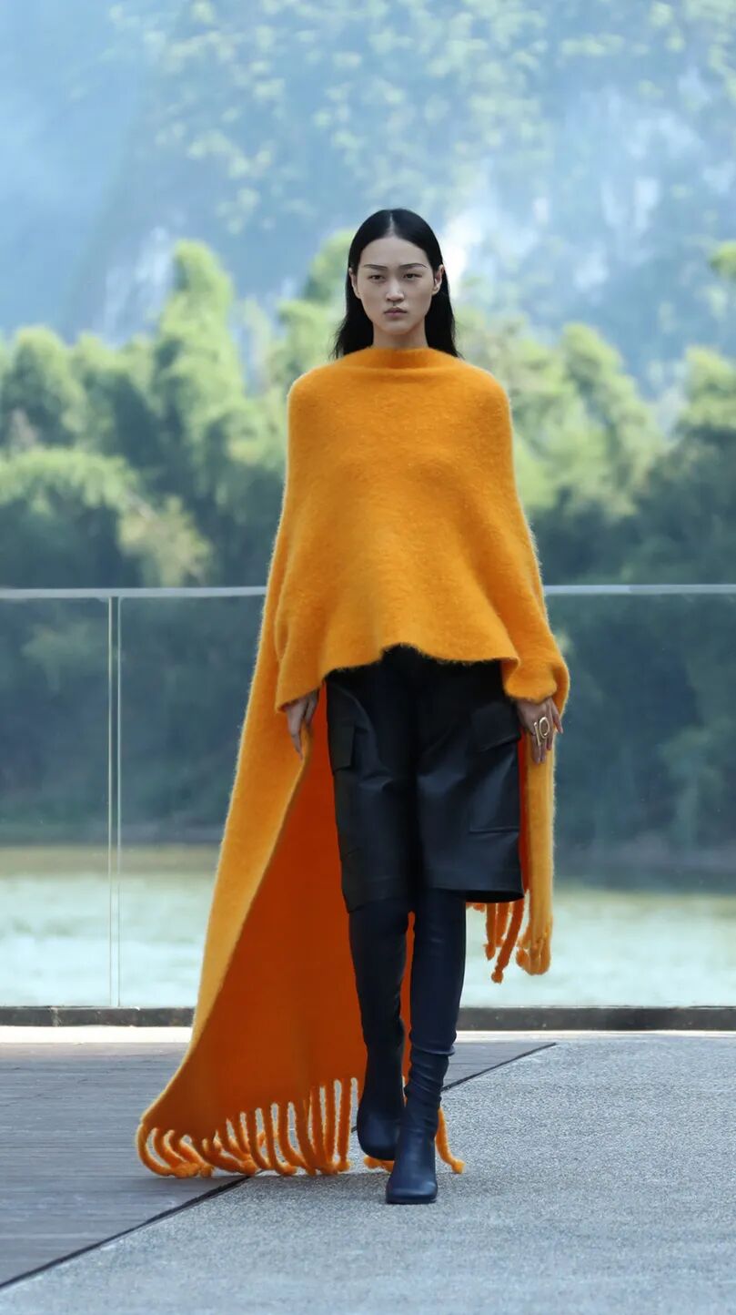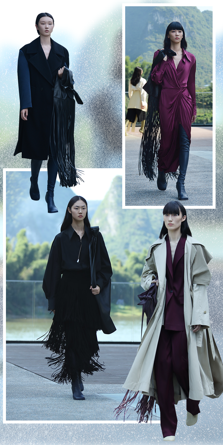 流苏元素贯穿始终,最显眼的是它们出现在大号手袋上作为点缀,给秋冬单品带来新的穿衣灵感。