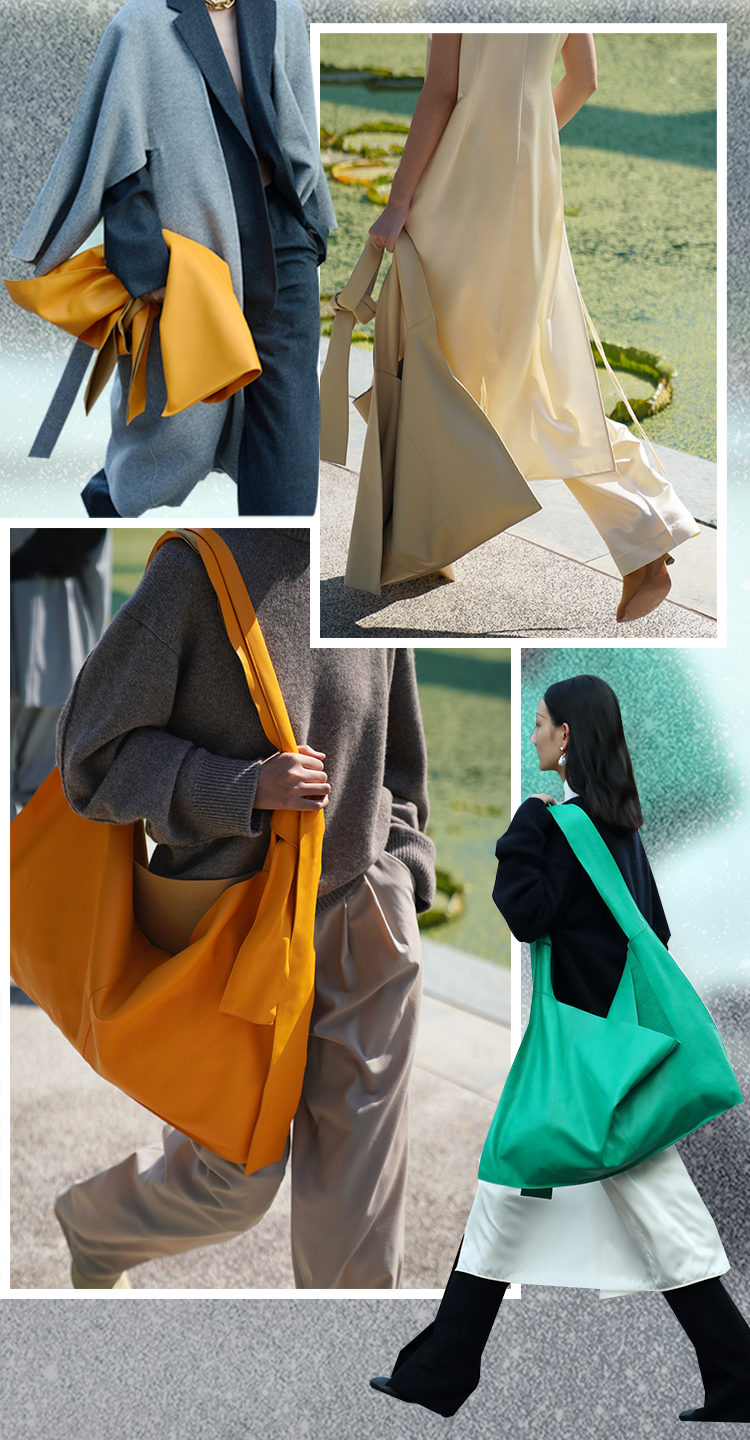 实用性与色彩度兼具的大号tote包,给冬日带来一抹温柔的阳光。