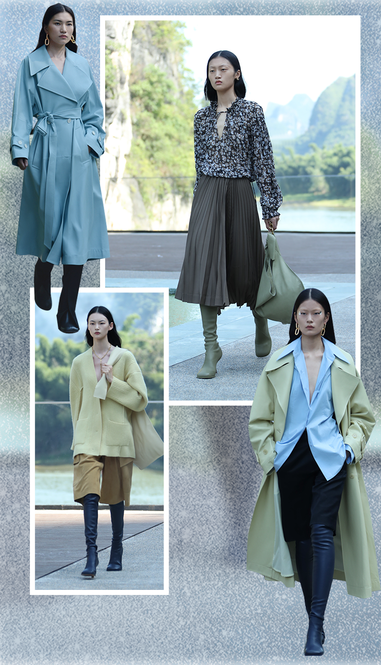 材质方面,采用了优质羊毛、羊绒、真丝等天然材质,带灰度的柔和色彩,让温和舒适的态度通贯始终。