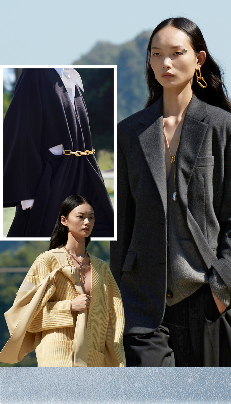 极简金属配饰与温柔的羊毛、羊绒相搭配,是现代女性温和又时髦的秋冬风格。
