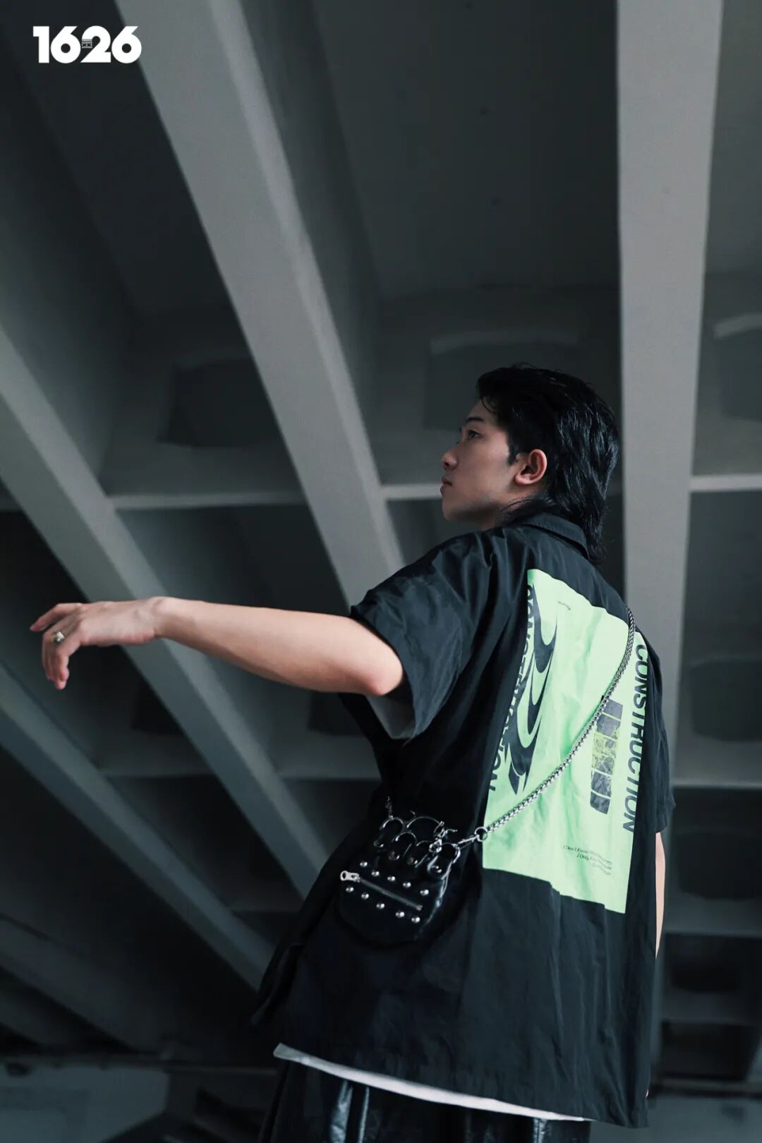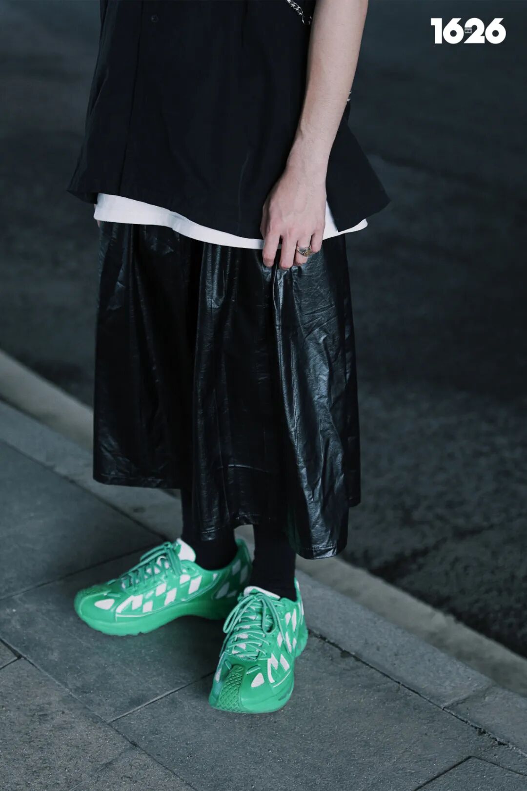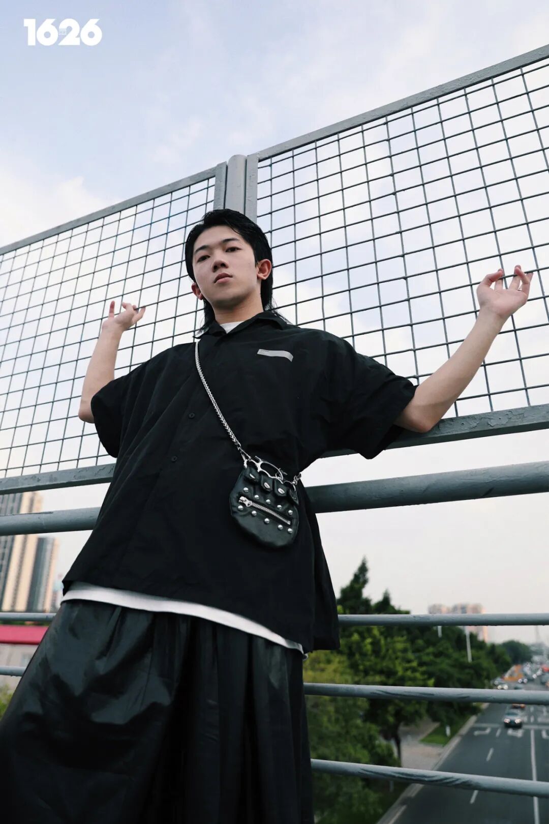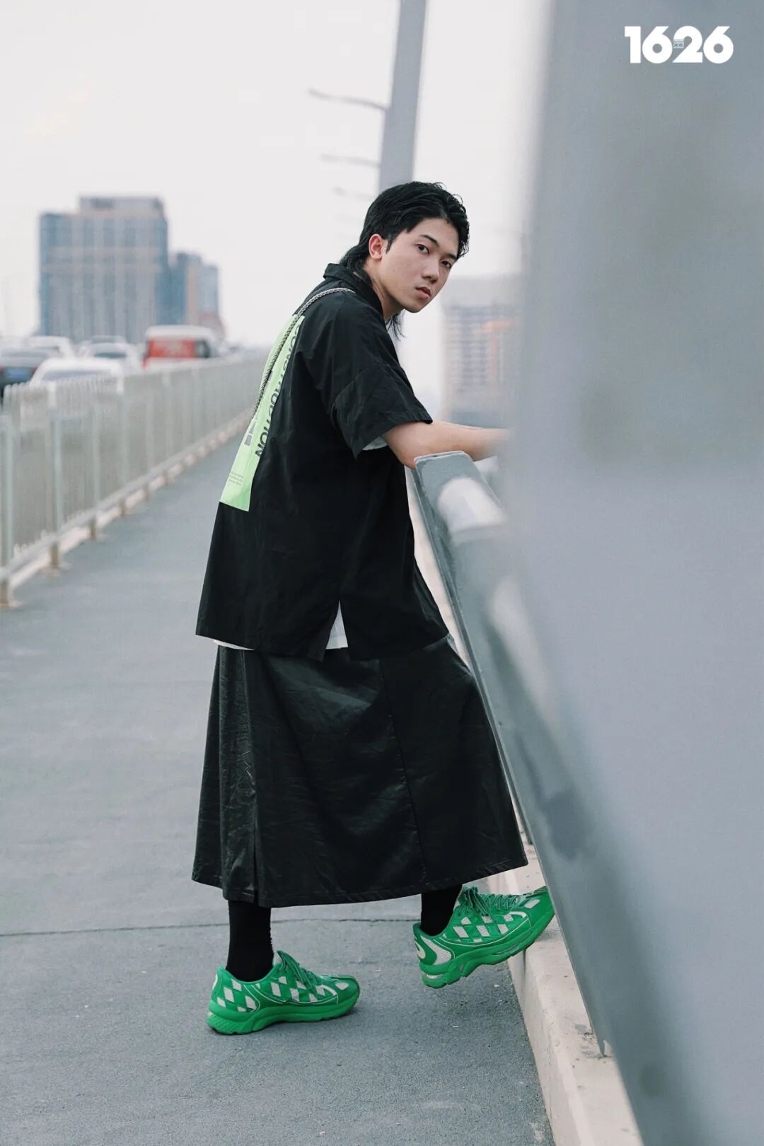 Total Black 依然是男生穿裙子的关键字,但不意味着你不能加点色彩。衬衫印花和鞋款的颜色相互呼应,中间则需要一件不同于外搭颜色的打底衫进行分割,否则视觉上就会和巫师袍没有区别,如果还想增加多一些层次感,挎包和马甲也是不错的选择。