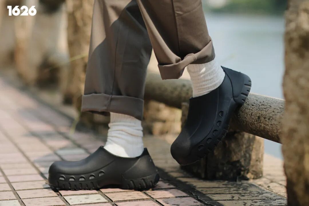 这可能还要归功于老爹鞋回潮,「笨重」的鞋型在这几年也算是抢尽了风头,厨师鞋宽大的鞋头大概也是大家开始穿它的理由之一。
