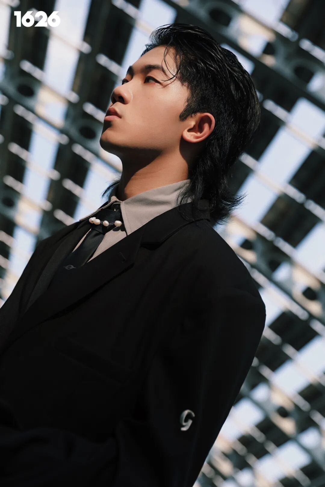 很多嘻哈歌手都给我们示范过珍珠项链的佩戴方式,基本上都以街头风格来演绎。所以这次友仔换了个思路,搭配了一整套西装。西装外套依然选择较为宽松的版型,垫肩的设计不仅是溜肩人群的救星,整个廓形也不会变得太过正式。