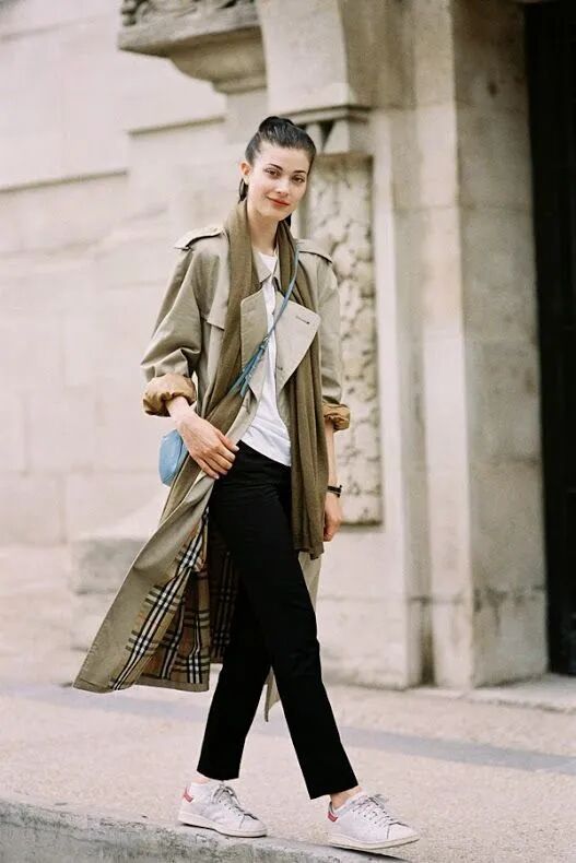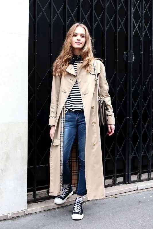 像驼色H版型风衣上身既能优化身材线条,与九分牛仔裤组cp率性且高雅的街头feel,混搭短靴法式女人味十足,混搭帆布鞋舒适减龄!