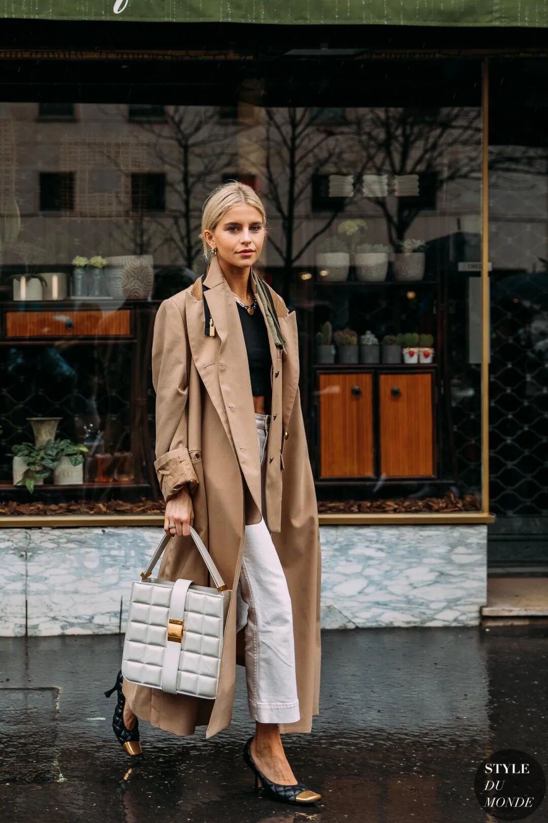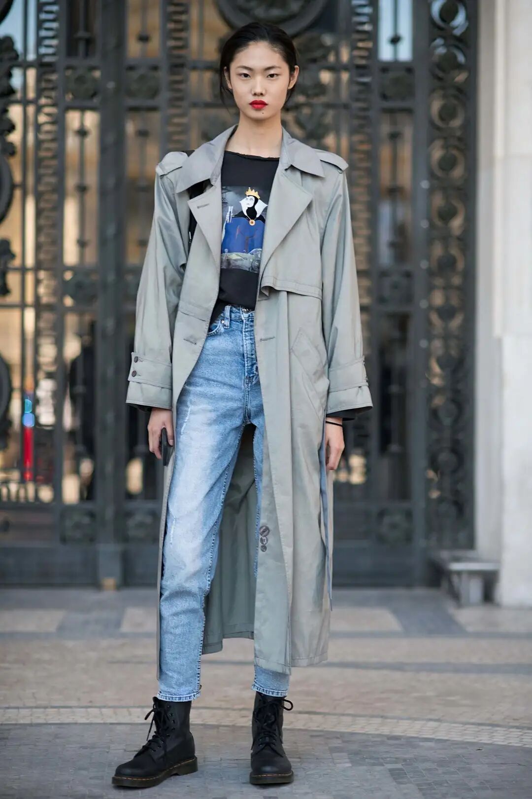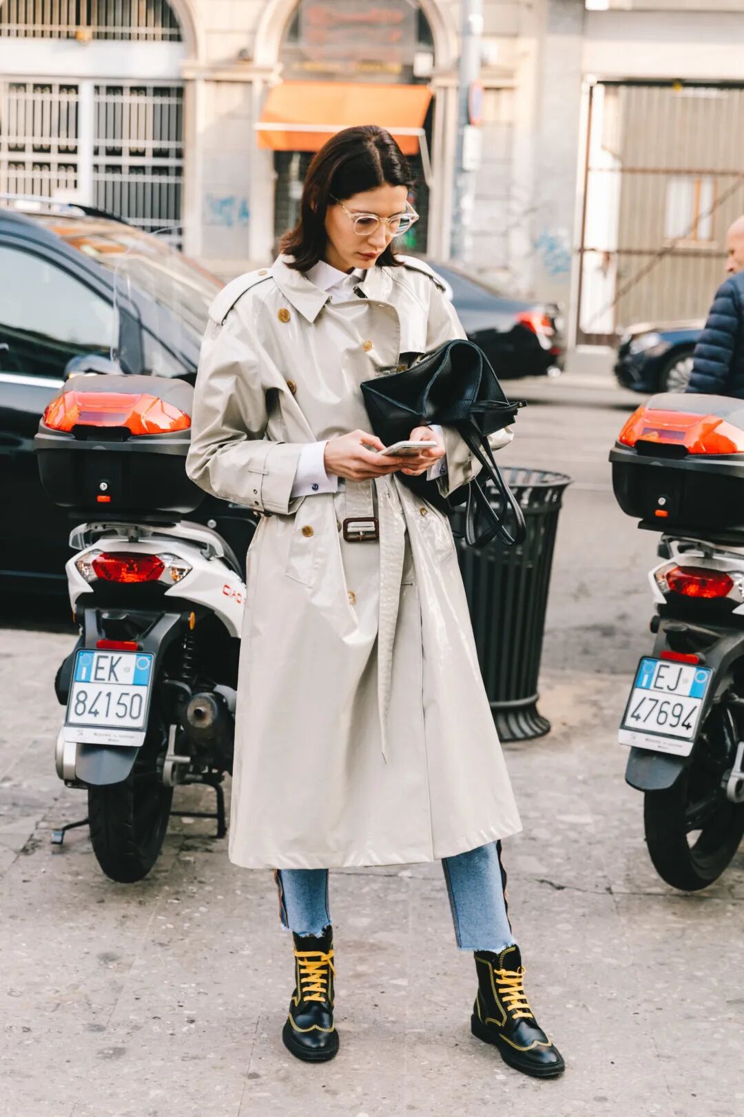除了混搭蓝色牛仔裤,亦可借助碳黑色牛仔裤与浅色系风衣组cp,显瘦又洋气!