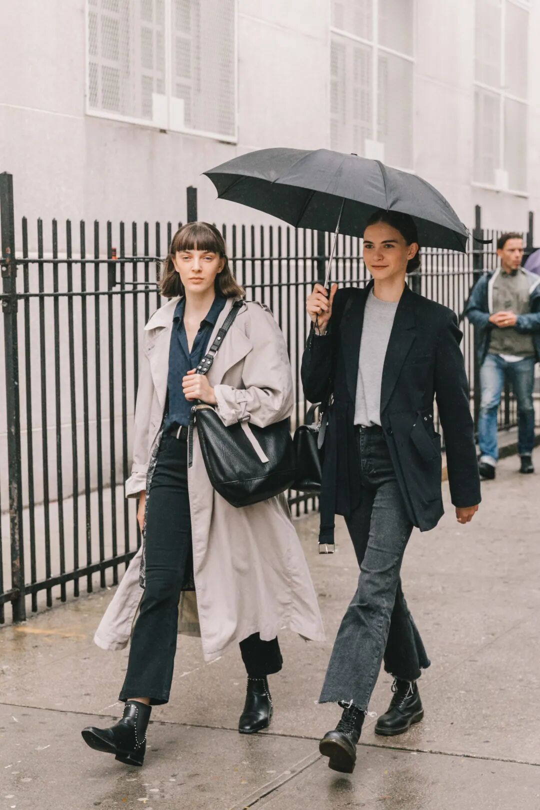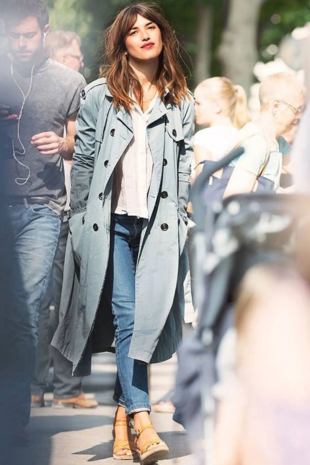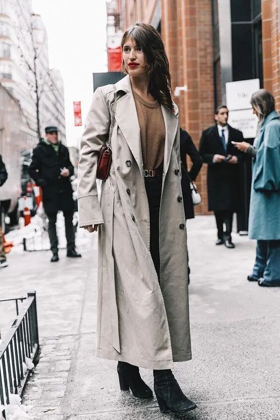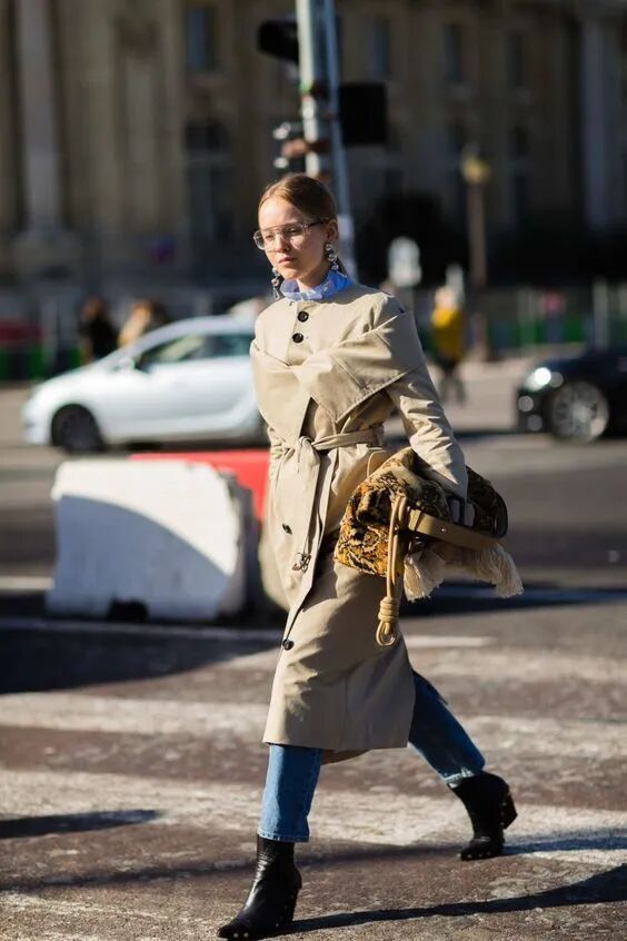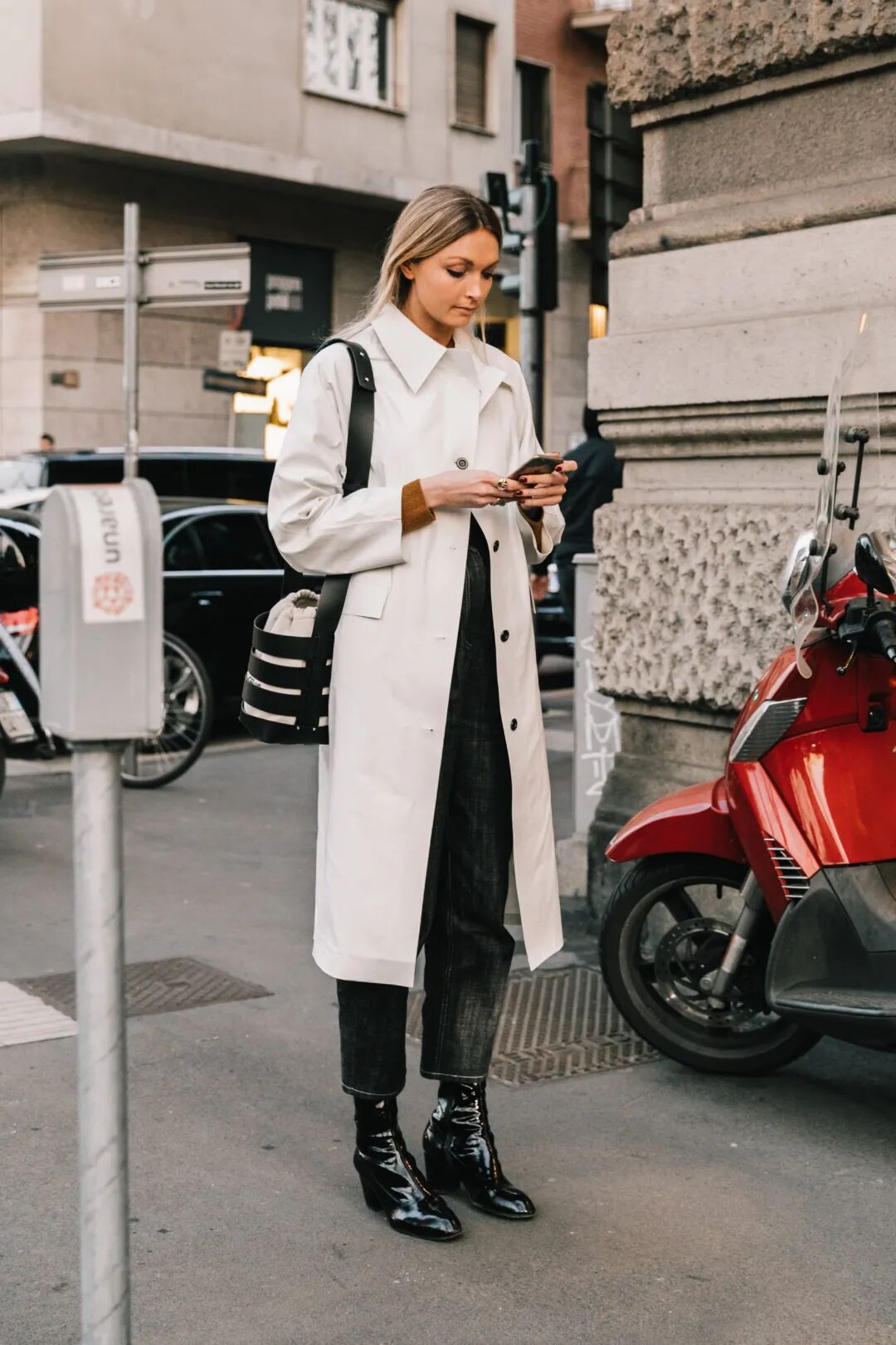 除了混搭蓝色牛仔裤,亦可借助碳黑色牛仔裤与浅色系风衣组cp,显瘦又洋气!