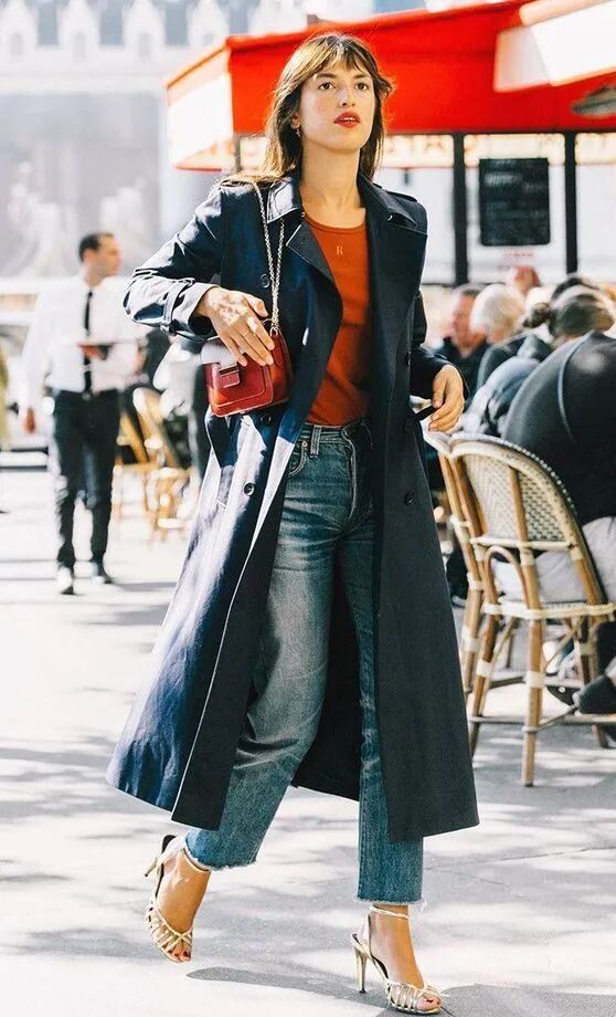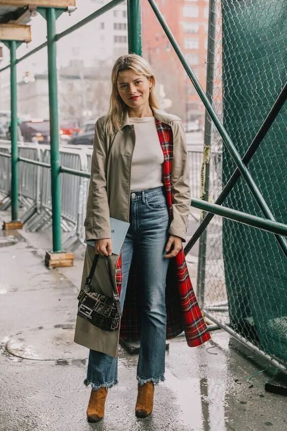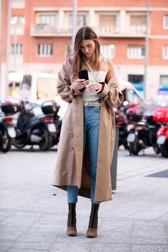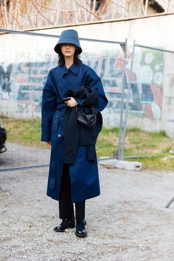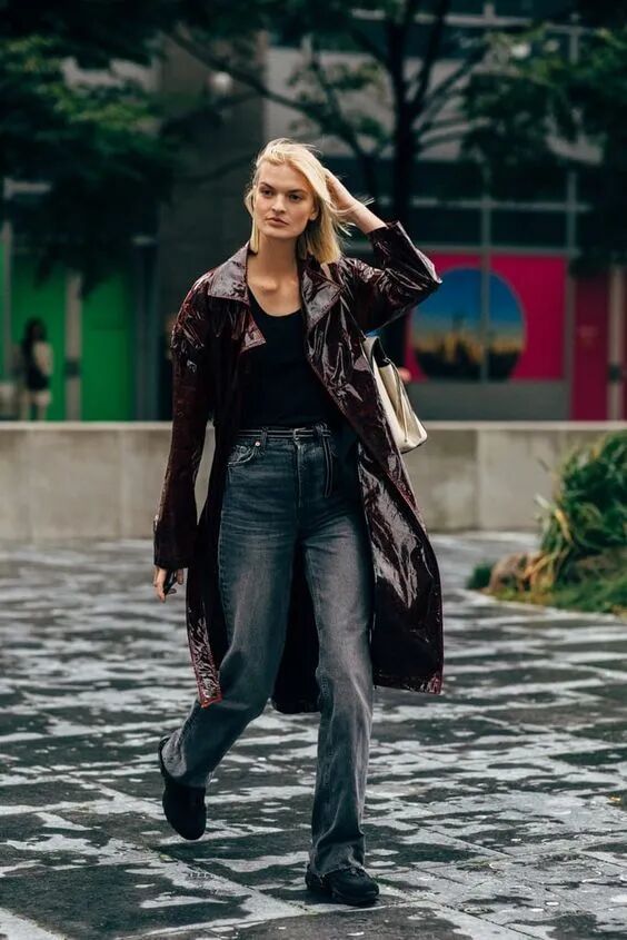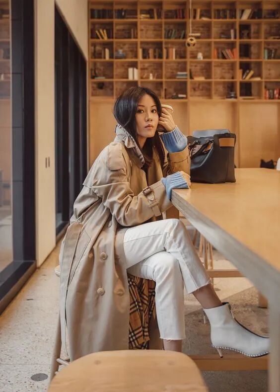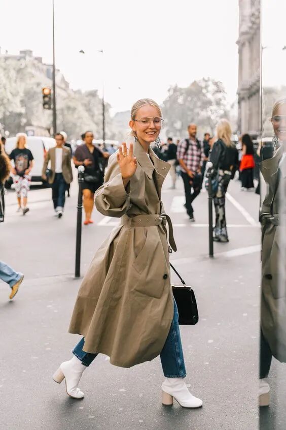 灰白色或是雾霾蓝风衣混搭蓝色牛仔小脚裤or阔腿裤, 和谐不乏层次立体感,低调之中透着几分高级美,尽显高挑气质!
