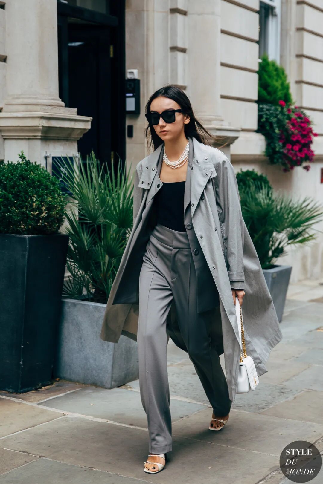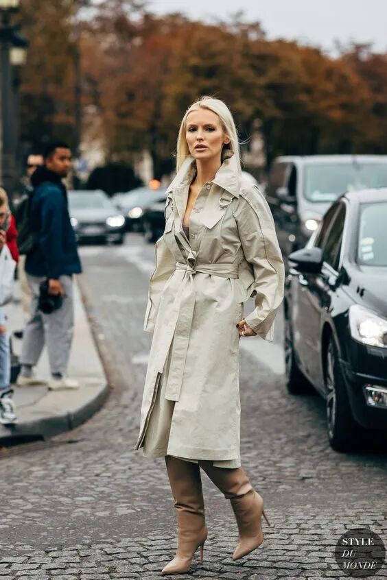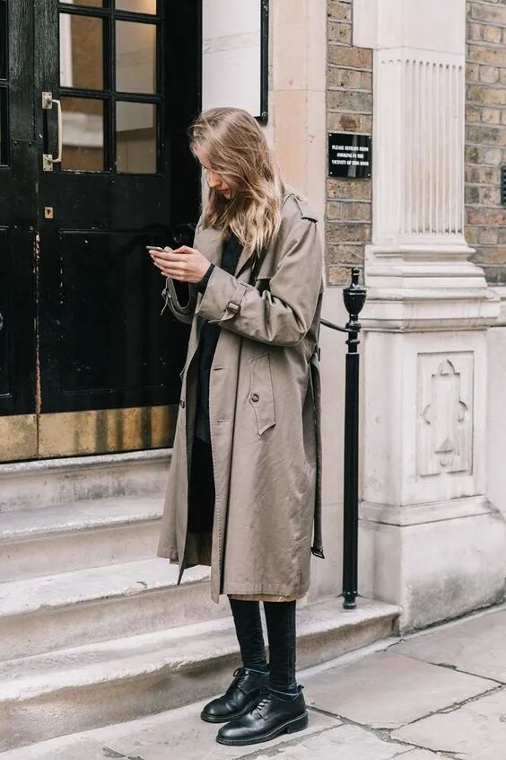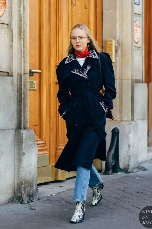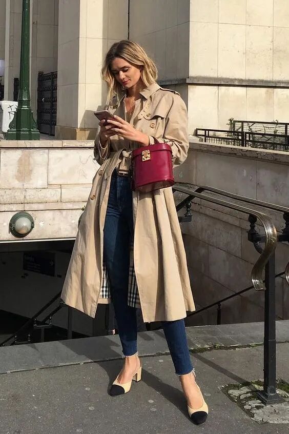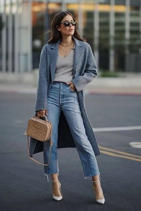 灰白色或是雾霾蓝风衣混搭蓝色牛仔小脚裤or阔腿裤, 和谐不乏层次立体感,低调之中透着几分高级美,尽显高挑气质!