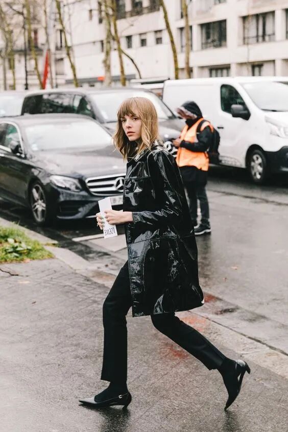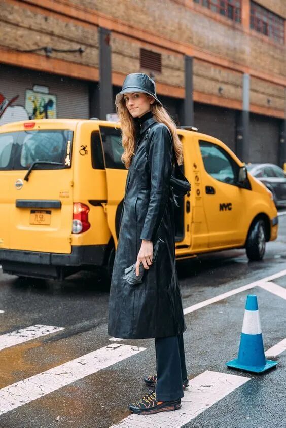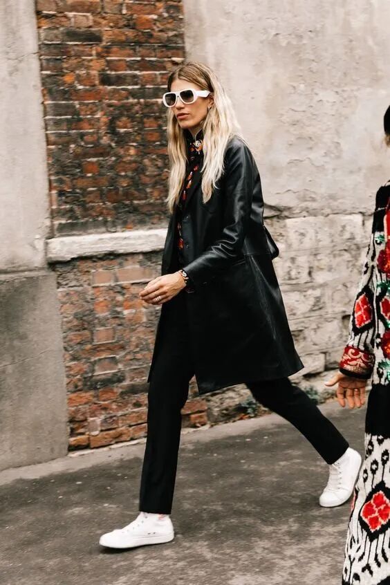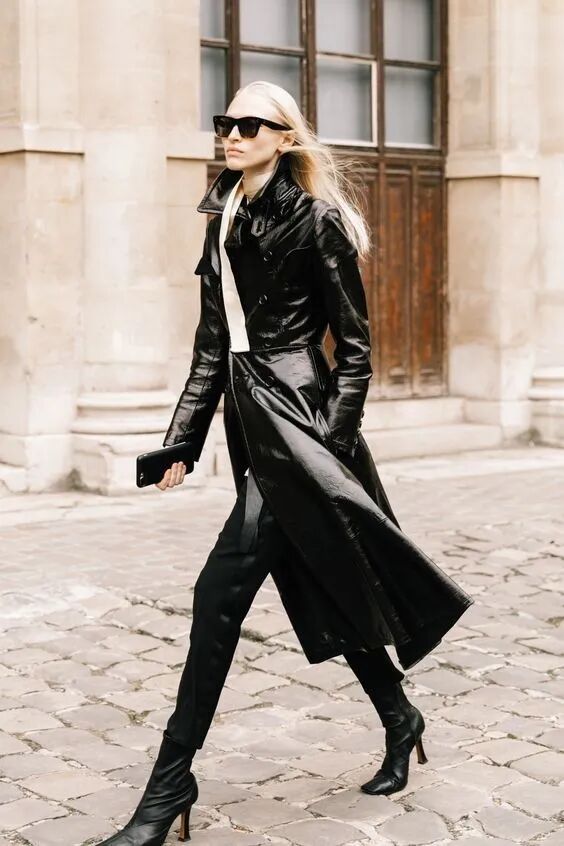 黑色风衣或是皮感风衣与黑色阔腿裤搭在一起,高冷干练的街拍韵味,给人一种只可远观的魅力也很赞啊~快pick起来!