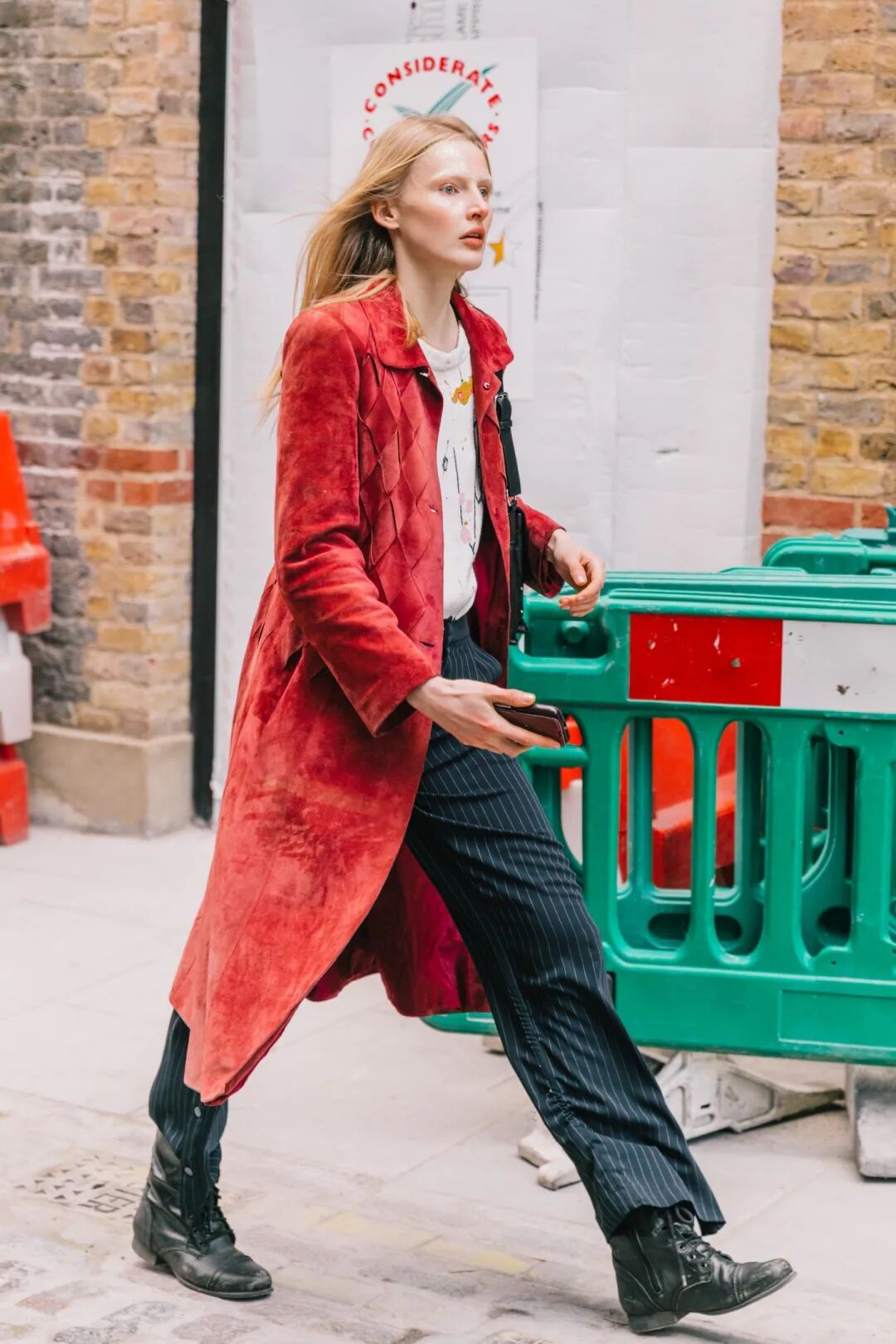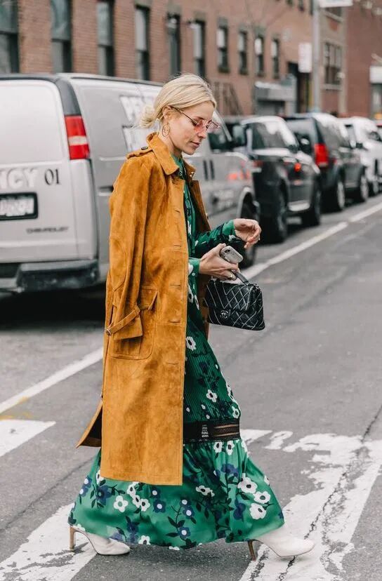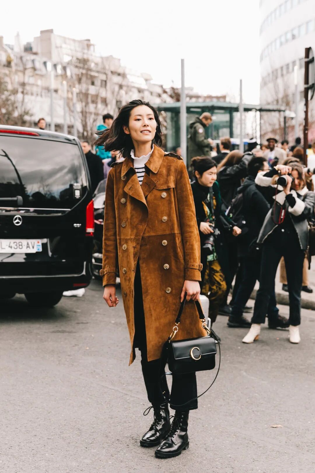 若以上款式都已get,2020秋天温暖靓丽的麂皮风衣,也凭借文雅轻佻的超强气质,悄然变身为街拍必备拗造型利器,不但能够摆脱常规穿衣的局限,随性复古韵味同样能够赚足回头率!