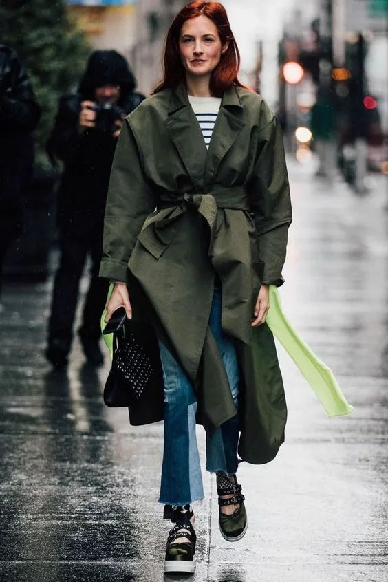 关注潮流的MM不难发现,随着绿色系相继走红今年绝对是大火的姿态,而内敛且高级感爆棚的“复古绿风衣”任意与别色混搭都能给人雅痞且高雅的街拍style!